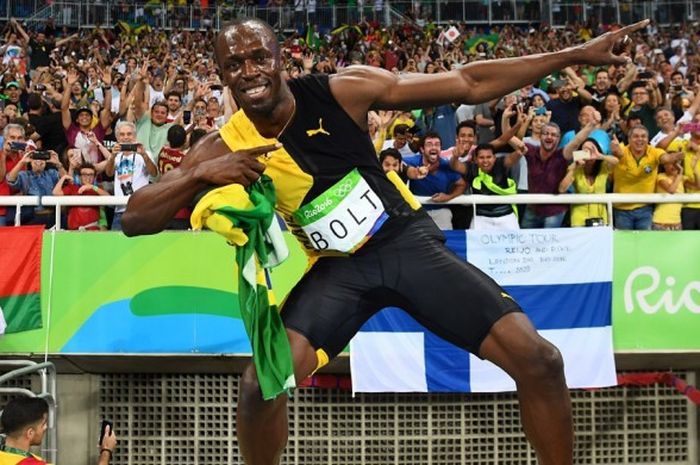 Di nomor 100 meter ia punya catatan 958 detik. Olimpiade Beijing 2008 Olimpiade London 2012 dan Olimpiade Rio 2016 yang diikuti oleh sprinter asal Jamaika itu. Usain Bolt of Jamaica celebrates winning the gold medal in the mens 100 Metres Final during day two of the 12th IAAF World Athletics Championships at the Olympic Stadium on August 16 2009 in Berlin Germany.